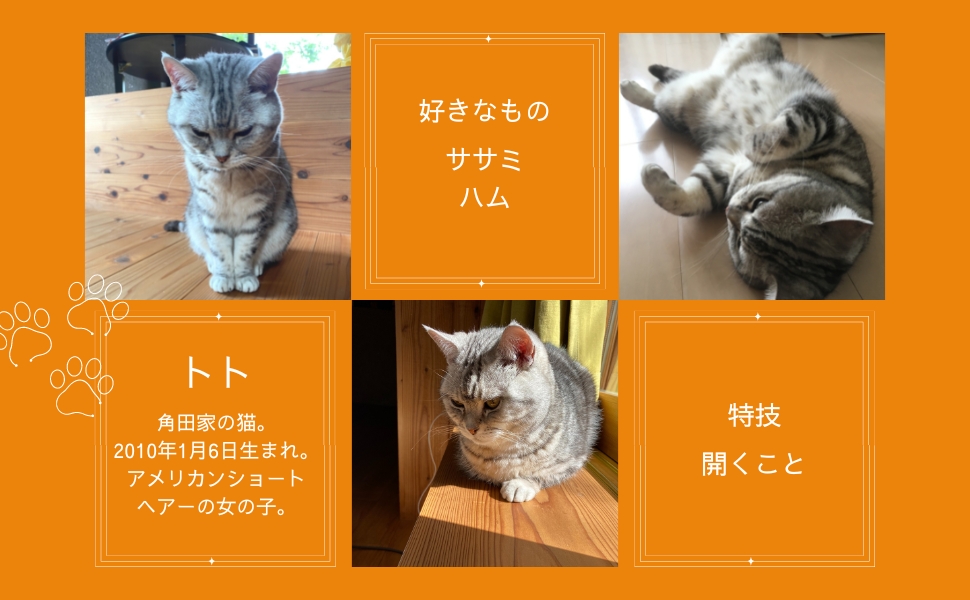 トトが角田家にやってきて十三年。子どものころのまんまに見えるけれど、眠る時間は増えたし、あんまり遊ばなくなった。ごはんを用意したりおやつをあげたり、腹に乗せたり顔マッサージをしたり。