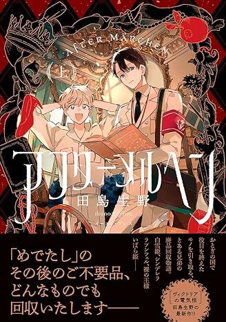 | アフターメルヘン(上) 田島 生野 (著) 「めでたし」のその後のご不要品、 おとぎの国の各地で役目を終えた「モノ」を回収するベテラン職員で面倒見のよい兄ヤコブと、新人職員で兄を尊敬している弟ヴィルヘルム。 白雪姫、シンデレラ、ラプンツェル、裸の王様、いばら姫―― 単行本でしか読めない描き下ろしショートストーリー4本+描き下ろしイラストを収録!! |