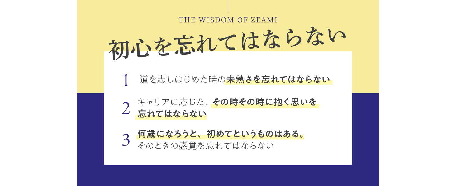 さらに、「初心」は若い新人だけのものではなく、それぞれの年齢に応じた初心があると世阿弥が説いていることも、あまり知られていません。