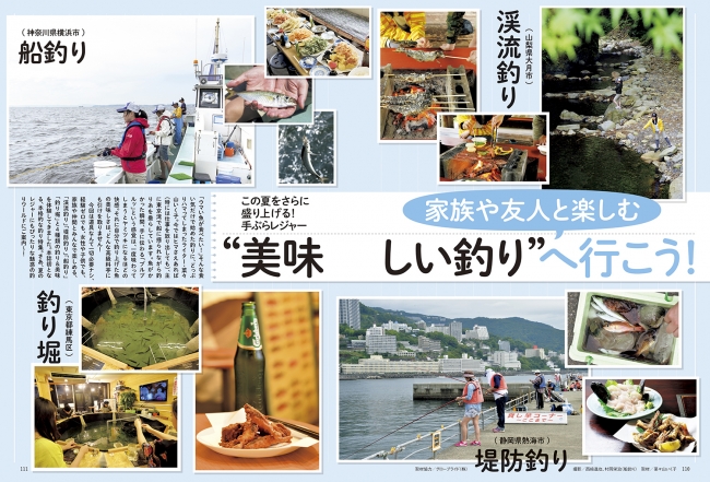 さらに、道具は一切必要ナシ。経験ゼロでも、女性や子供でも、家族や仲間とみんなで楽しめる、「渓流釣り」「堤防釣り」「船釣り」「釣り堀」と4種類の釣り&美味を釣り好きライターが体験した「美味しいフィッシング」もあります。