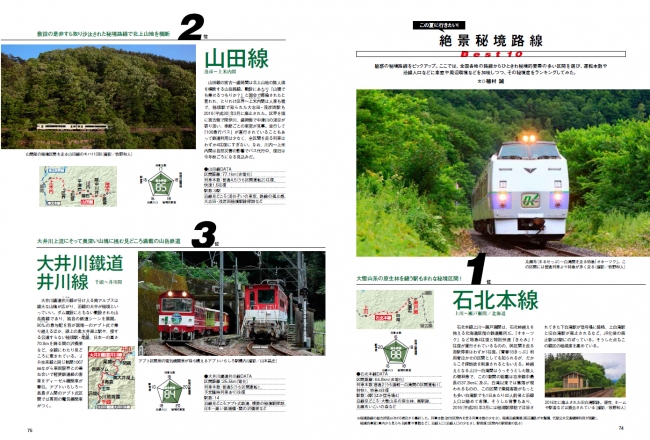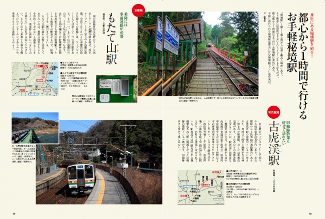 そのほか、大井川鐵道や飯田線、三江線など秘境路線ルポも掲載。さらに今こそ行くべきおすすめの秘境駅や都心から1時間で行けるお手軽秘境駅の紹介など、一冊まるごと北から南まで「秘境駅・秘境線」を完全に網羅した保存版の特集となっています。