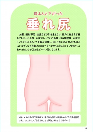 加齢や運動不足から、重力に逆らえず垂れてしまうのが「垂れ尻」。骨盤が後ろに傾き、ひざを曲げたままペタペタ歩く人が多いのが特徴です。