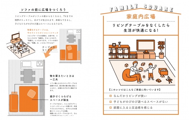 本書で紹介されている秘伝のモヨウ替えのレシピを使えば、それぞれの家庭に合った「理想の暮らし」のプランにあわせて、アレンジを加えながらモヨウ替えを行うことができます。