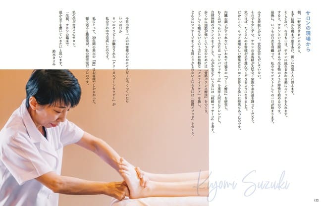30年前にセラピストとなった鈴木きよみさんは、東洋と西洋の2つの足裏刺激法に出合い、そこから独自の技術「きよみ式ゾーンセラピー[R]」を生み出します。