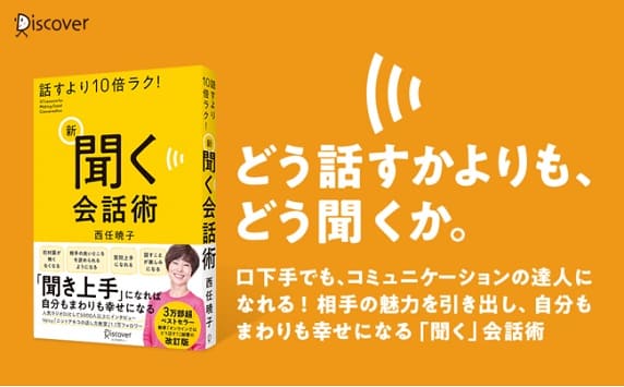 元人気ラジオDJ西任曉子さんの3万部超えベストセラーの改訂版『話すより10倍ラク! 新 聞く会話術』が、ディスカヴァー・トゥエンティワンより刊行されました。