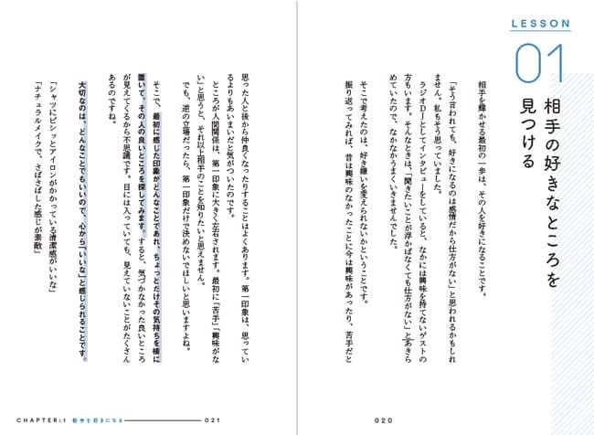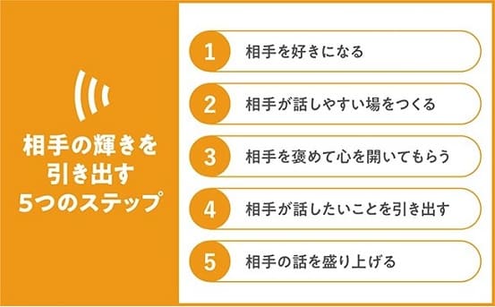 それぞれのステップごとに章立てし、さらに詳細な57のレッスンで、相手が安心して話したくなる会話術を紹介しています。