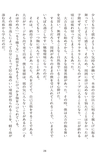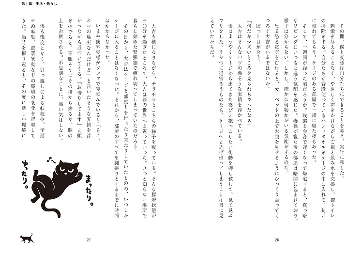 妻様の一言で里親会に参加した『僕』。その人生に対する考え方は、元野良の黒猫『大吉』との出会いによって一変してしまった。そう、捨て猫を拾ったはずの僕が、大吉によって救われ、拾われたのだ。甘えたい時に甘え、構って欲しくない時には容赦なく爪を立てて牙をむく。それにもかかわらず、なお愛される『大吉』の生き様に、相手の顔色ばかりを窺いながら生きる現代人へのヒントがある!