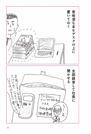 …などなど、会社員なら誰でも「あるある!」とうなずくようなシチュエーションをお題に、実際に使える方法から爆笑ネタ、エジソン、マイケル・ジョーダン、松下幸之助さんなど偉人の発想まで308の仕事術を大喜利形式で紹介しています。