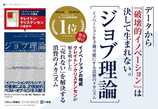 発売即日Amazonのマーケティング・セールス全般関連書籍で1位(2017年8月1日調べ)を獲得し、長らく品薄状態が続いていた『ジョブ理論』(ハーパーコリンズ・ ジャパン)が10月25日頃より重版分が出荷されています。