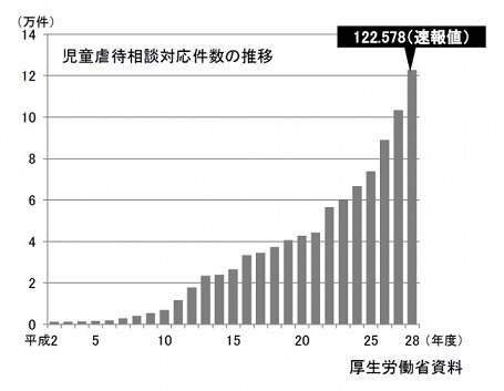 子どもが減少する中、厚生労働省は児童相談所に寄せられた「児童虐待に関する相談件数」は過去最多の12万件を超えたと報告しています。