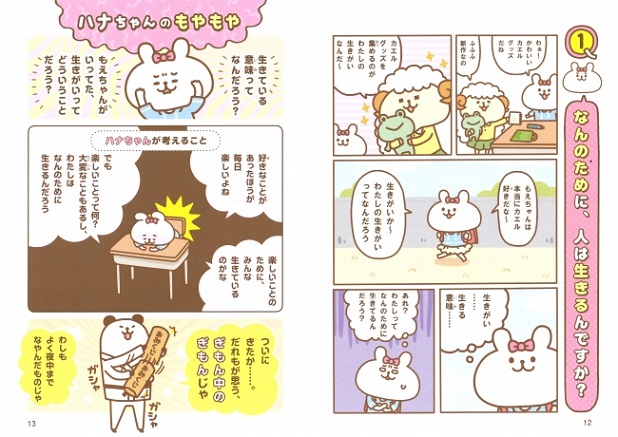 「なんのために、人は生きるんですか?」、「自分の得にならないこと、する必要あるの?」、「天国や地ごくって、見た人はいるの?」、「不公平なことばかりで、イヤになる……。」など、聞きたいけど聞けないそんな疑問を、かわいい動物キャラとマンガを使って一緒に考えます。