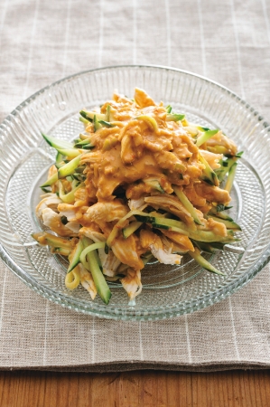 ▼「バンバンジーだれ」があれば「バンバンジーサラダ」にしたり、とうふにかけたり、エビなどの魚介にあえてもおいしい。