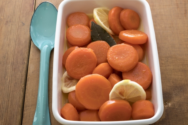 ▼肉のソテーの添え物やおべんとうの副菜に「にんじんのはちみつバターグラッセ」