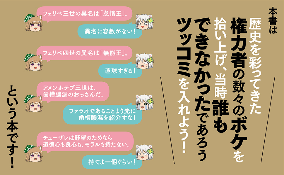 本書では、そんなツッコミ不在のまま繰り広げられた歴史上の数々のボケを追っていきます。