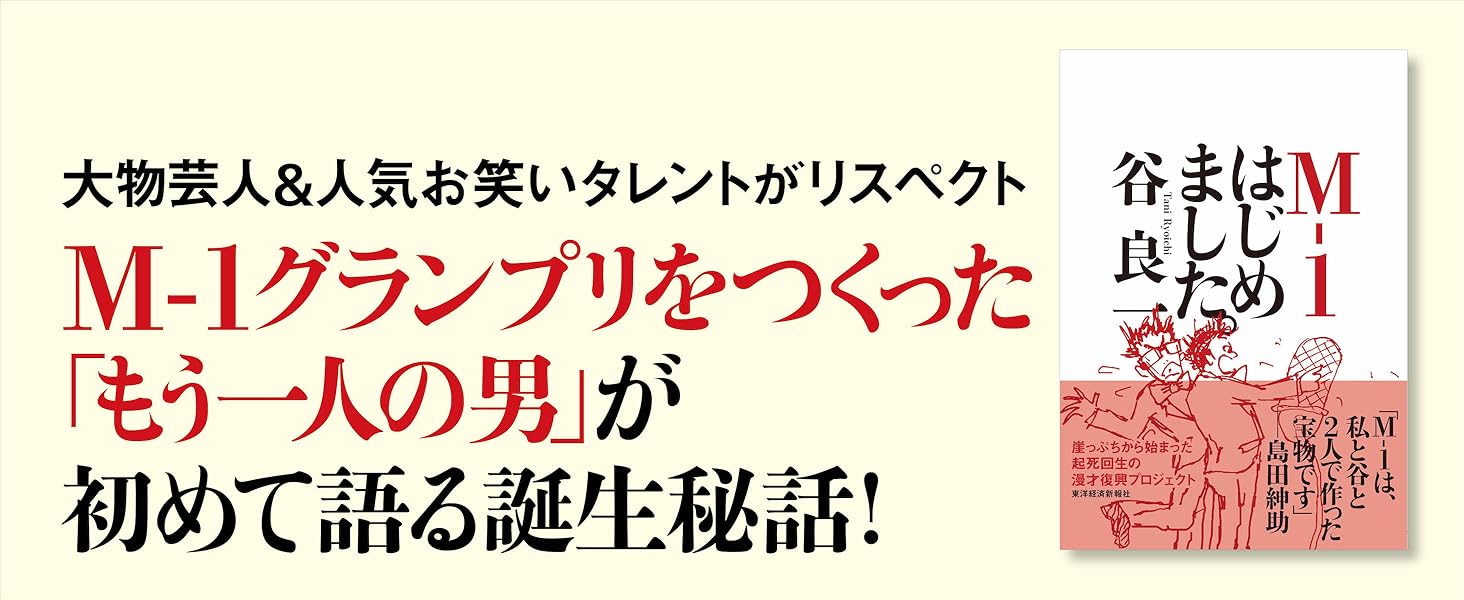 M-1グランプリ創設に奔走した元吉本社員・谷良一さんの著書『M-1はじめました。』が東洋経済新報社より刊行されました。ブームが去った漫才を再び盛り上げようと奮闘した、一人の吉本社員の「泥臭いドラマ」です。
