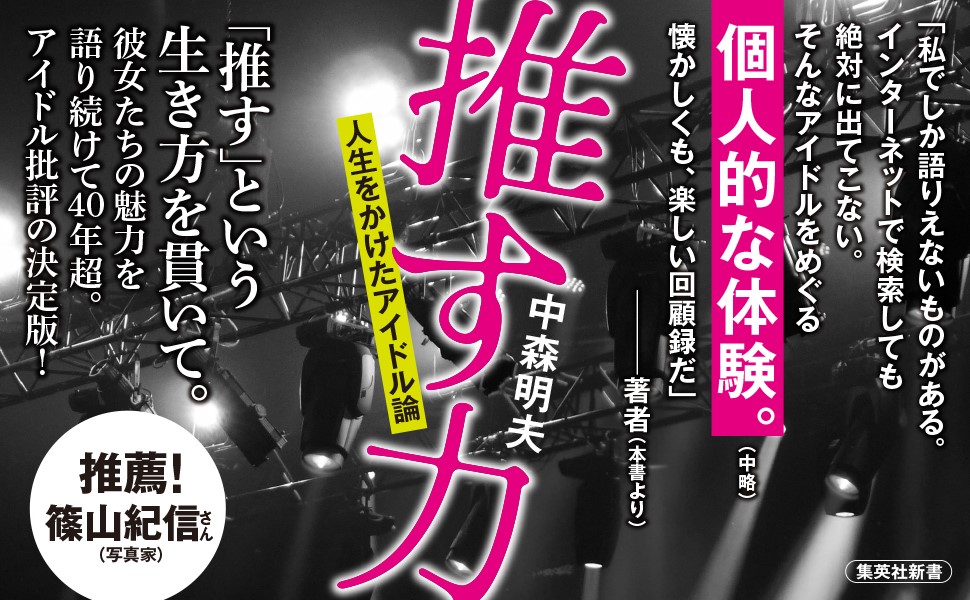 人生をかけて「推す」ことを生業にしたアイドル評論家・中森明夫さんの集大成『推す力』が集英社新書より刊行されました。