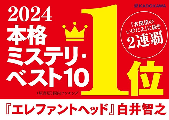 白井智之さん著『エレファントヘッド』(KADOKAWA)が原書房『2024本格ミステリ・ベスト10』(編著:探偵小説研究会原書房)の国内ランキングで第1位を獲得しました。