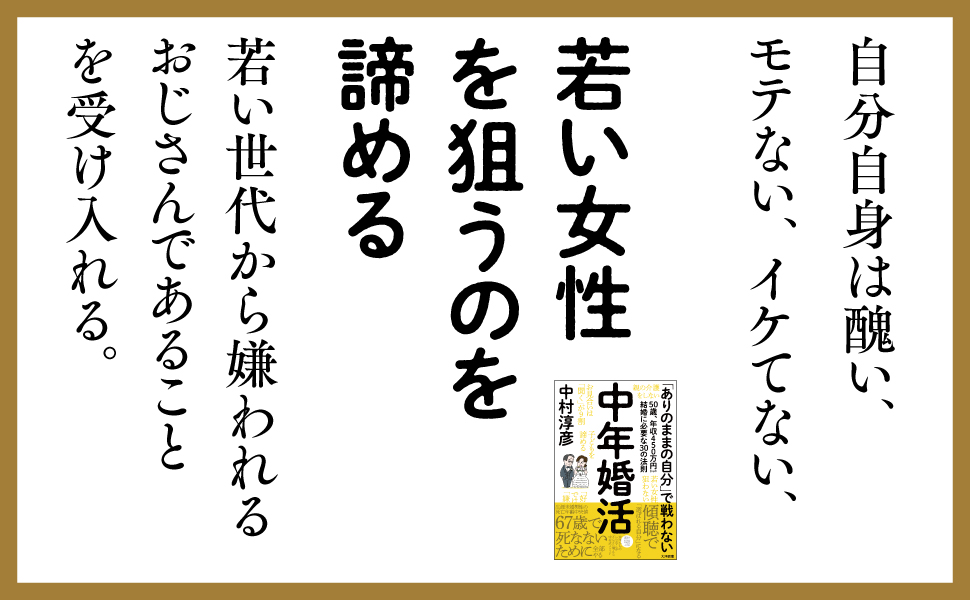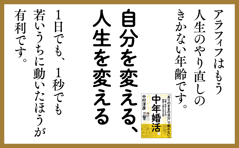 本書は中年男性の婚活指南本であると同時に、死なないために、ラストチャンスに婚活にチャレンジしてみませんか?というメッセージも込めています。
