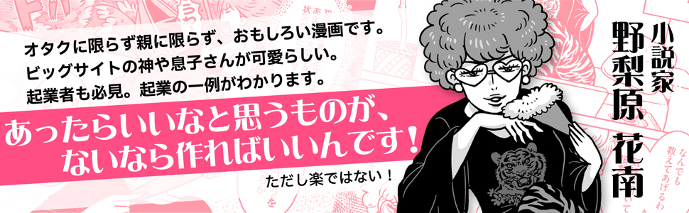 「オタクに限らず親に限らず、おもしろい漫画です。ビッグサイトの神や息子さんが可愛らしい。起業者も必見。起業の一例がわかります。あったらいいなと思うものが、ないなら作ればいいんです! ただし楽ではない!」