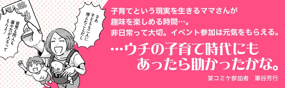 本書は、実際に同人イベントのための託児所を立ち上げ、2017年から述べ1000人以上の子どもを預かっている「にじいろポッケ」の運営者である四辻さつきさんが、その活動に至るまでを書いたエッセイをコミカライズしたものです。