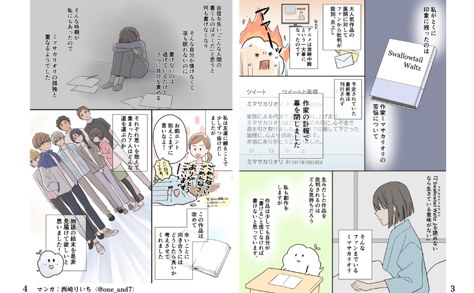 X(旧Twitter)では、『僕は何度でも、きみに初めての恋をする』などで知られる漫画家・西崎りいちさん(@one_and7)が、あらすじ・感想マンガを投稿しています。
