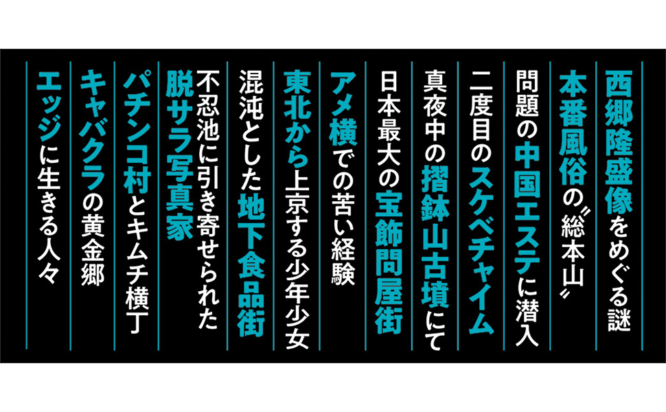 「上野の山」を歩く/上野と『夕やけ番長』/ミステリー作家が愛した街/不忍池にたたずむブラックデビル/西郷隆盛像をめぐる謎/上野をめぐる霊的戦い/上野に隠された“もう一人の天皇”……ほか