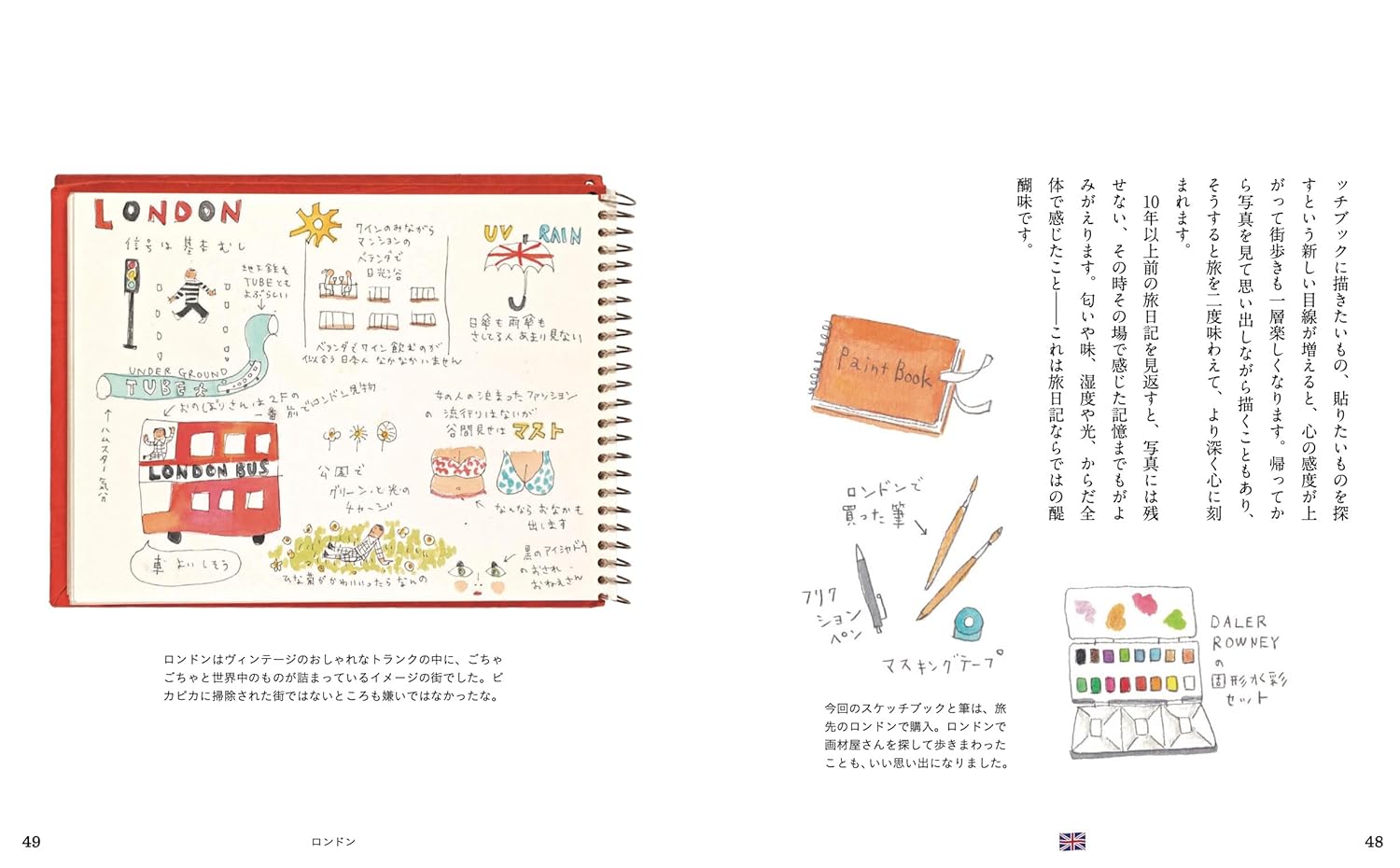 初の海外ワークショップ体験/知らなかったロンドンの紅茶の話/グリーンパークでビールを/レベッカさんのヴィンテージファブリック/スケッチブックとミニ絵の具セットを持ち歩く ほか